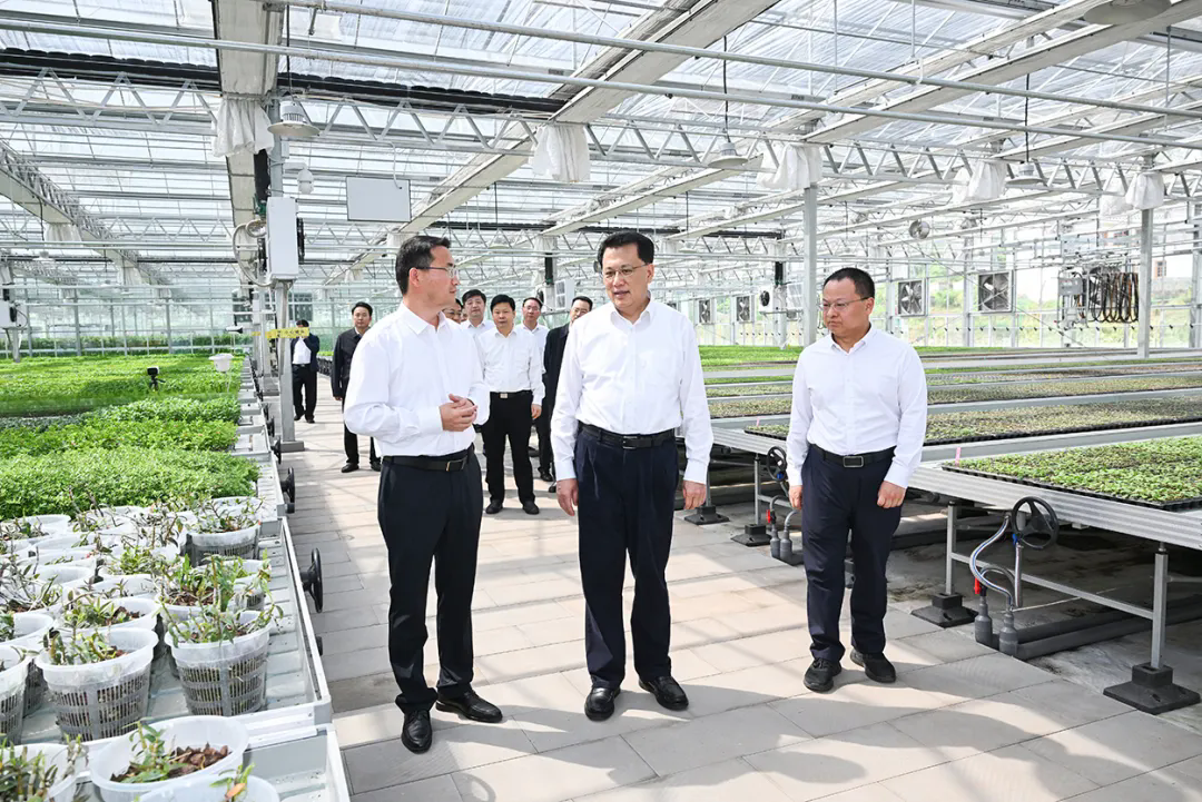 4月28日,市委書(shū)記袁家軍在銅梁區(qū)中國(guó)農(nóng)科院蔬菜花卉研究所西南研發(fā)中心調(diào)研。記者 蘇思 攝/視覺(jué)重慶